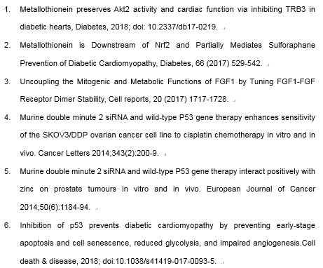 (1)项目:国家自然科学基金--青年基金(No.81600631 to J. Gu)成纤维细胞生长因子21通过抑制P53活性对糖尿病心肌病保护作用的研究