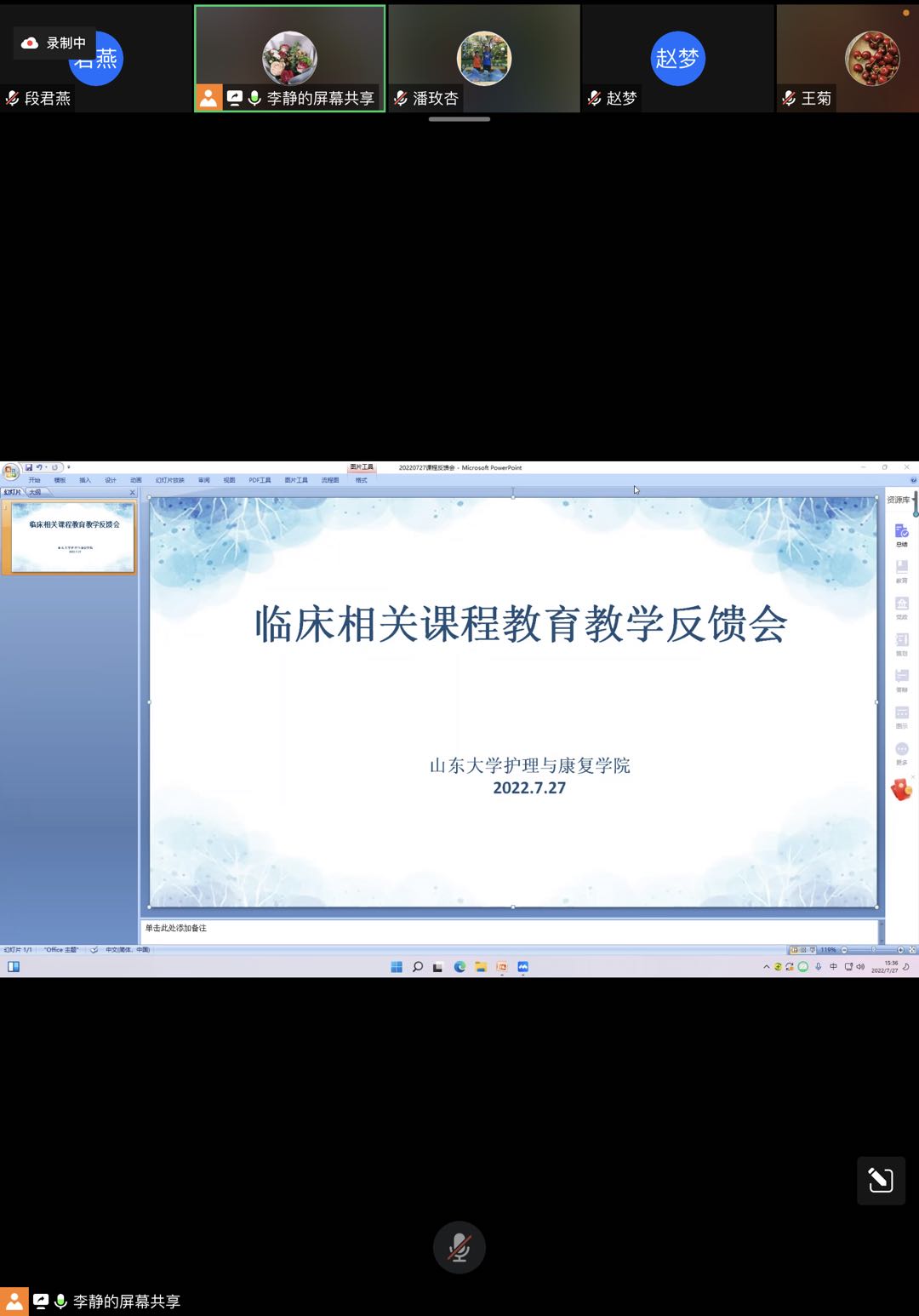 为持续提高教学质量,提升学生临床实操技能,sunbet申搏官方网站于2022年7月27日在608会议室召开了临床相关课程教育教学反馈会。会议由副院长李静主持,各位临床相关课程负责人及课程骨干教师以现场或线上视频的形式参会。
