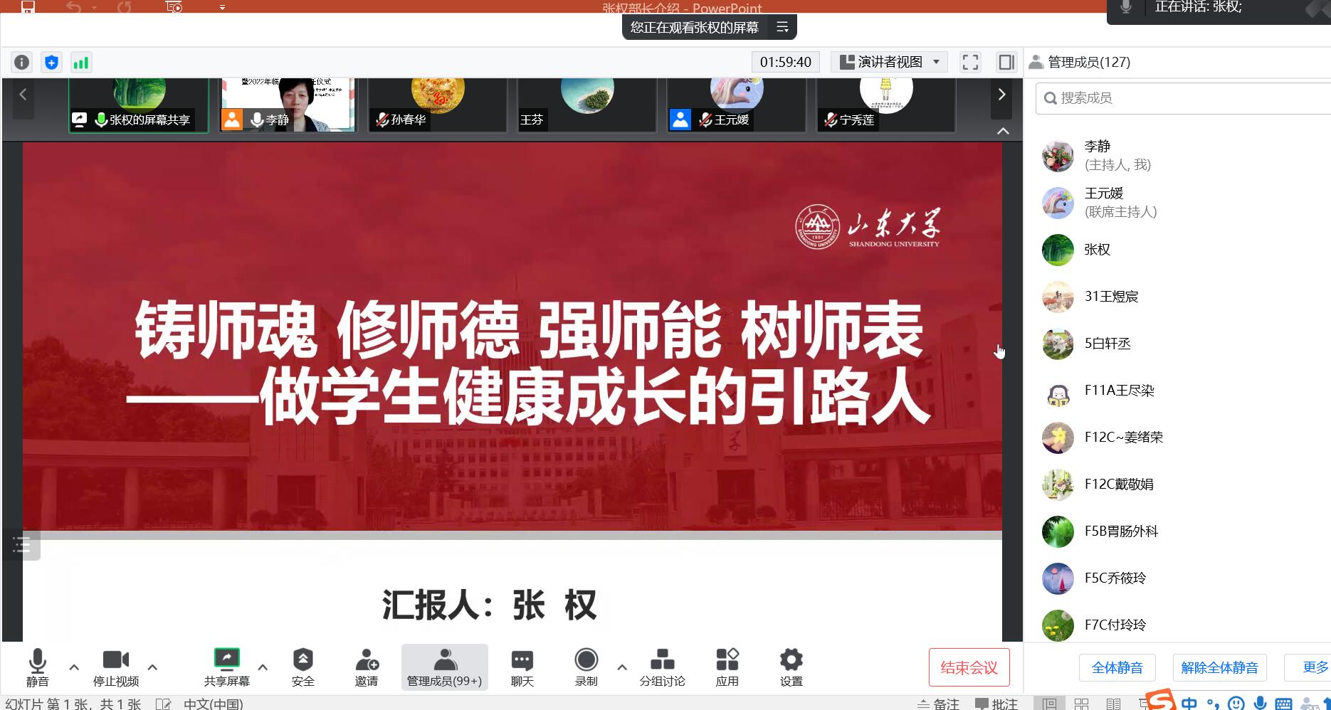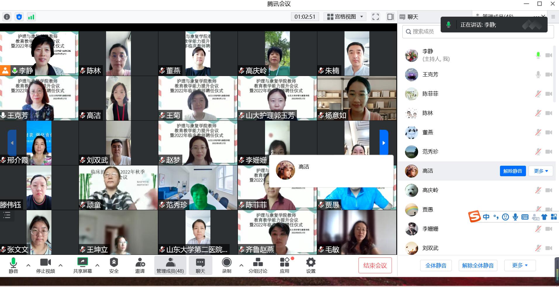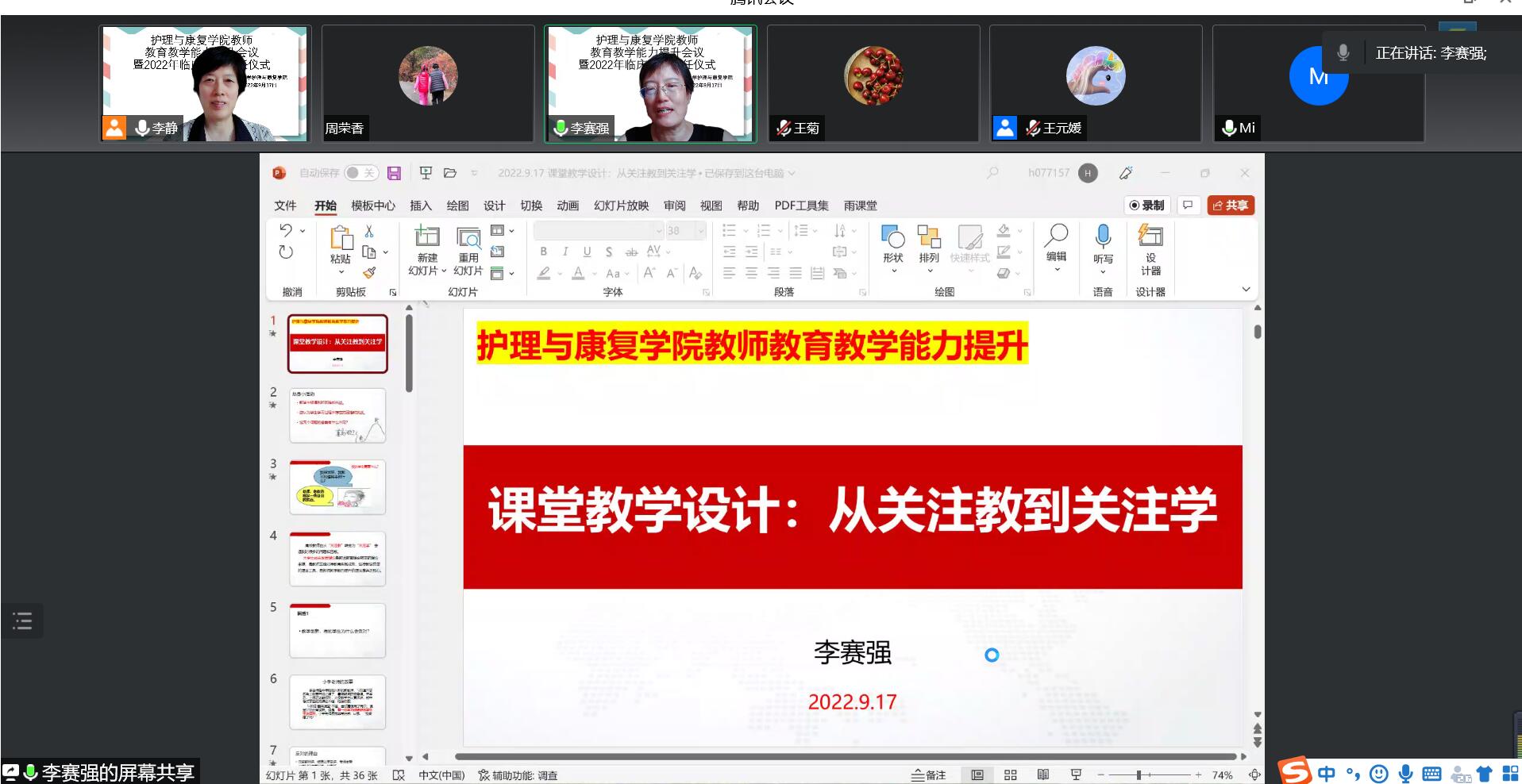 汇报结束后,李静宣读护理与康复与学院2022年新聘任临床教师名单,并对新教师的加入表示欢迎,她指出本次会议对学院本科教学质量,推进教学改革,培养优秀教师,起到积极推动作用,希望各位教师积极参与教师能力提升活动,持续提高教育教学能力。