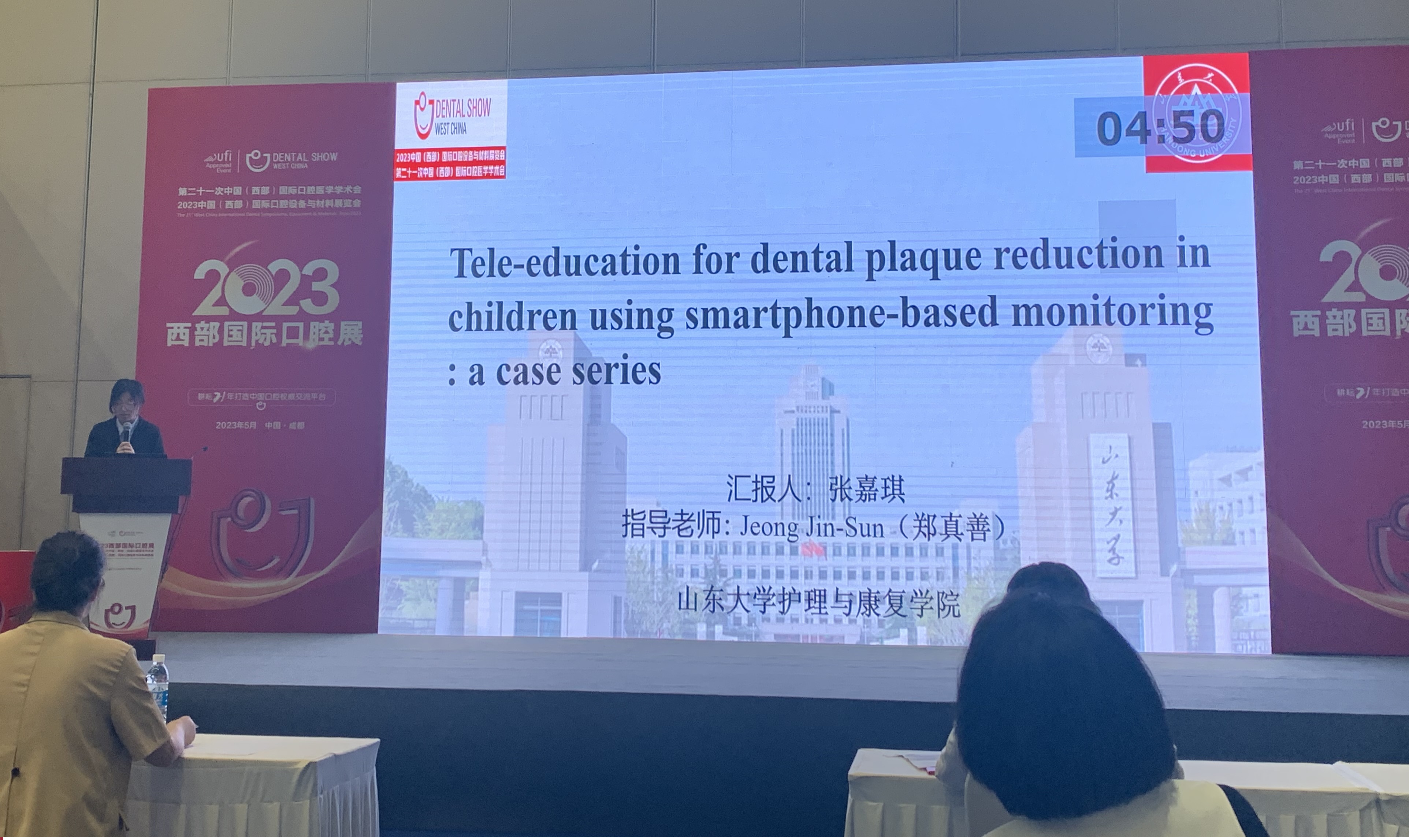 此次张嘉琪同学报告的研究题目是“Tele-education for dental plaque reduction in children using smartphone-based monitoring: a case series”,指导老师是郑真善老师。这项研究的内容主要是基于智能仪器监测减少儿童牙菌斑的远程教育的病例系列报道,目的是调查一种基于远程刷牙监测系统(Smartphone-based remote toothbrushing monitoring system: SPTM)对于在家庭环境中的儿童的刷牙指导效果。