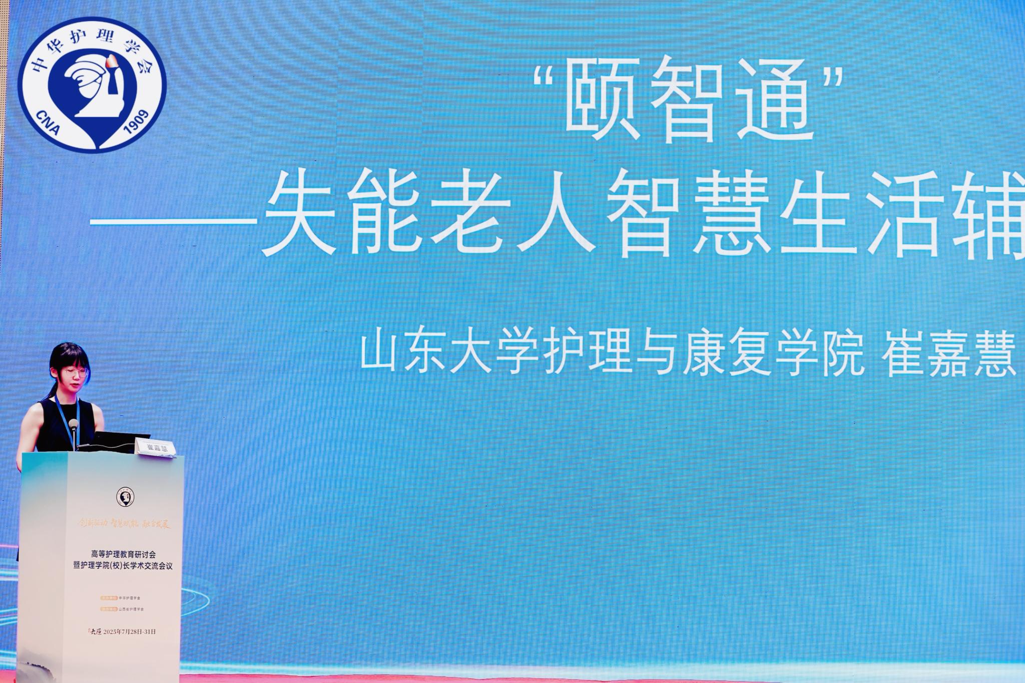 会上,崔嘉慧同学分享了题为《“颐智通”——基于脑机接口的失能老人智慧生活辅助平台》的研究。谈及此次大会发言的感受,她表示:“这次交流让我深刻体会到护理领域与前沿科技结合的无限可能。科研过程中,从最初的构想萌芽到不断完善方案,离不开导师的悉心指导和团队的协作支持。通过与来自各地的护理师生交流,我不仅收获了宝贵的建议,更坚定了将创新思维融入护理实践、为老年护理事业贡献力量的决心。科研之路虽充满挑战,但每一次突破都让我对护理专业的价值有了更深的理解。”