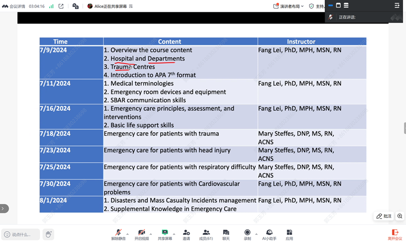 2025年7月8日,由sunbet申搏官方网站开设的《急救护理情景下的结构化护理措施》暑期课程正式开课。本课程特邀美国威斯康星大学护理学院Lucy Mkandawire-Valhmu教授和明尼苏达大学护理学院Lei Fang老师联合授课,由申搏郭玉芳副教授协助课程开展。本次课程共2学分,32学时,采用线上教学模式。课程吸引了来自sunbet申搏官方网站、基础医学院、临床医学院等10余个学院的90名本科生选修,充分展现了学生对急救护理知识的学习热情。