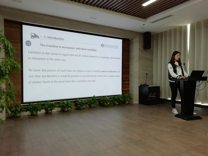 今天第一位汇报者是2017级学术型硕士研究生侯芳艳,她汇报的文献题目为:“Trajectories of mood and stress and relationships with protective factors during the transition to menopause: results using latent class growth modeling in a Canadian cohort”,该研究对102例绝经前期女性情绪状态和感知压力进行5年纵向追踪随访,使用潜在类别模型进行分析,观察情绪与压力变化轨迹以及基线期间相关保护性因素对情绪压力的预测作用。研究结果表明,绝经期间女性情绪状态和压力较为稳定;基线身体满意度、自尊、一般健康状况能够预测绝经期间情绪变化轨迹。崔乃雪老师对该文章的研究设计方法进行了点评,并推荐大家看该作者发表的其他相关文献。
