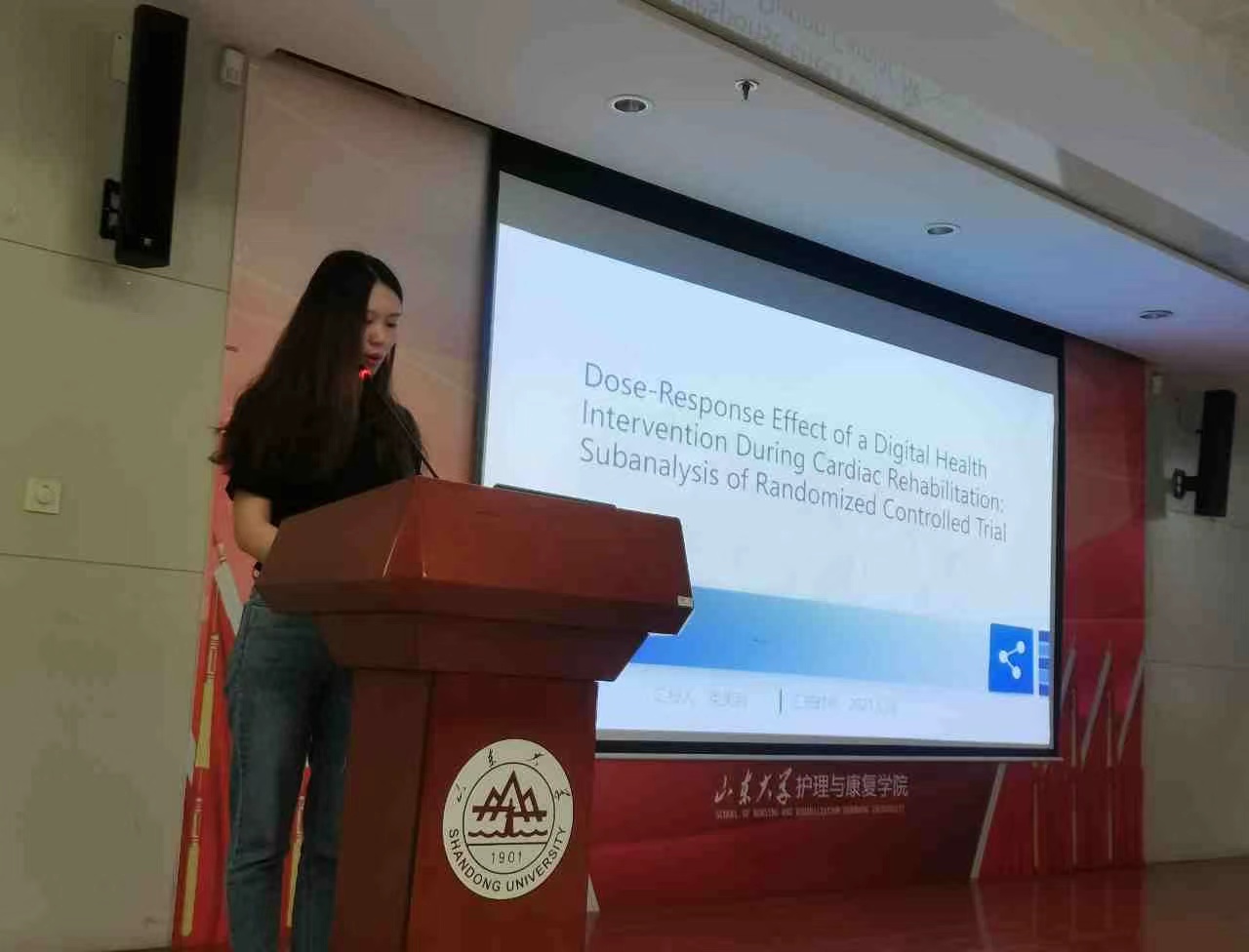 第四位汇报者为2019级专业型硕士类美容,本文献的题目是《Dose-Response Effect of a Digital Health Intervention During Cardiac Rehabilitation: Subanalysis of Randomized Controlled Trial》。该文献数据用了前期RCT和可行性研究的数据,进行二次分析。这项研究的主要目的是检验以下假设:通过单独登录来衡量,DHI使用量增加与体重减轻有关。评估了平台内登录与活动以及运动,饮食和药物依从性之间的关联。结果显示CR期间的总登录量与体重减轻呈显着正相关,所查看的教育模块和完成的任务与体重减轻呈显着正相关,但总登录量与体重减轻、饮食依从性或每周运动分钟数的改善之间并没有显着相关。这个结果扩展了我们先前的发现,并证明增加的DHI登录预示着急性冠脉综合征后接受CR的患者体重减轻。DHI可用作选择性鼓励患者坚持二级预防生活方式改变的工具。
