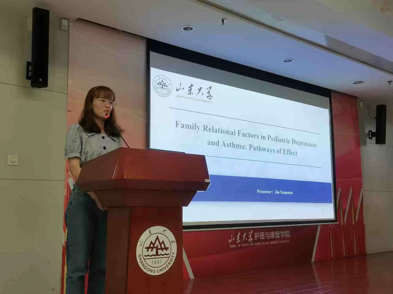 第三位汇报者为2019级专业型硕士贾元敏,本文献的题目是《儿童抑郁症和哮喘的家庭关系因素:影响途径》,目的是测试一个多层次的生物行为家庭模型,提出负面的家庭情绪氛围会导致儿童抑郁症状,而抑郁症状又会导致哮喘疾病的严重程度。父母和孩子之间的关系不安全感被认为是一种中介变量。方法:哮喘儿童报告有关系安全感、焦虑和抑郁症状。父母报告了人口统计学、哮喘史和症状,以及家庭情感表达。哮喘的诊断是通过父母和孩子一起提供的病史、临床评估、肺功能测试和乙酰甲胆碱激发来确认的,疾病的严重程度根据国家心肺和血液研究所的指南进行分类。前瞻性测量用药依从性。结果:通径分析表明,数据与假设模型拟合良好。消极的家庭情绪氛围预测儿童抑郁症状,预测哮喘疾病的严重程度,关系不安全感是部分中介。即使在控制了依从性之后,抑郁也与疾病严重程度相关。结论:研究结果与所提出的家庭模型一致,提示在治疗抑郁症和哮喘儿童时评估和干预这些特定的家庭关系过程具有临床重要性。