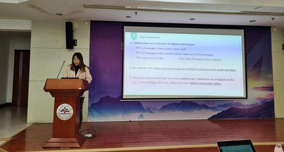 第三位汇报者是2020级硕士研究生路梦新,本次汇报的是2019年发表在Journal of Happiness Studies 杂志上的一篇文章,该杂志2020年影响因子是3.852,五年影响因子是4.729,文章题目是“Feel Good, Do Good Online? Spillover and Crossover Effects of Happiness on Adolescents’ Online Prosocial Behavior”。本研究是一项为期5天的日记研究,招募了来自比利时的136的家庭,共有136个青少年和234个父母参与了本次研究。本研究的目的是探讨幸福感的在情境中(学校/工作情境——家庭情境)的溢出效应和在个体间(父母——孩子)的交叉效应,以及幸福感对于青少年网络亲社会行为的影响。研究结果表明青少年在学校的幸福感会正向影响他们在家庭中的幸福感,支持了幸福感在情境中的溢出效应。而幸福感在个体间的交叉效应仅在母亲——女儿中得到证实,表明母亲和女儿间可能存在更强的幸福感的交叉。此外,结果表明女孩在家庭中的幸福感与她们的网络亲社会行为是相关的,这符合积极情绪的拓展与构建理论。然而,男孩的幸福感与他们的网络亲社会行为并没有显著的相关性,可能是由于男孩的网络相关行为并不依赖于他们自身的情感状态。关于网络亲社会行为的性别差异还需要在未来的研究中进一步探讨。