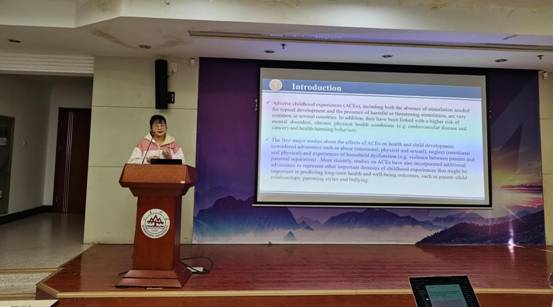 第二位汇报者是2020级硕士研究生卢燕娥,本次汇报的是发表在Translational Psychiatry上的一篇文章,题为Adverse childhood experiences, daytime salivary cortisol, and depressive symptoms in early adulthood: a longitudinal genetically informed twin study,该文章发表在Q2区,影响因子为6.222。下丘脑-垂体-肾上腺(HPA)轴功能失调可能是童年不良经历(ACE)和抑郁症之间关系的基础。然而,有限的研究使用纵向数据研究了年轻人中HPA轴可能的中介作用。此外,尚不清楚遗传的影响是否会促成这些关联。该文章中参与者是来自双胞胎早期发展研究的290名儿童。ACEs在3-11岁时被评估。该文章计算了一个累积风险分数,并使用因子分析和潜在类分析得出不同的ACEs群。11岁时,HPA轴的活动由白天的唾液皮质醇指数来衡量。抑郁症状是在21岁时确定的。使用一种基于双胞胎的方法测量了皮质醇水平改变和抑郁症状升高的遗传责任。该文章用混合效应回归模型进行因果调解分析。结果显示,ACEs累积暴露、欺凌和情感虐待与11岁时皮质醇水平的降低有关。在暴露于多个ACE的参与者中,较低的皮质醇与21岁时较高的抑郁症状有关。较低的皮质醇水平在ACEs累积暴露、欺凌和父母功能失调/情感虐待与较高的抑郁症状的总关联中起了大约10-20%的作用。遗传因素对这些关联有贡献,但在考虑到遗传干扰时,皮质醇在ACEs累积暴露和欺凌关联中的调解作用仍然存在。总之,ACEs与成年早期抑郁症状的升高有关,部分是通过青春期早期较低的皮质醇水平,这些关系独立于遗传混杂因素。但该文章样本量较小,仍需后续研究验证。