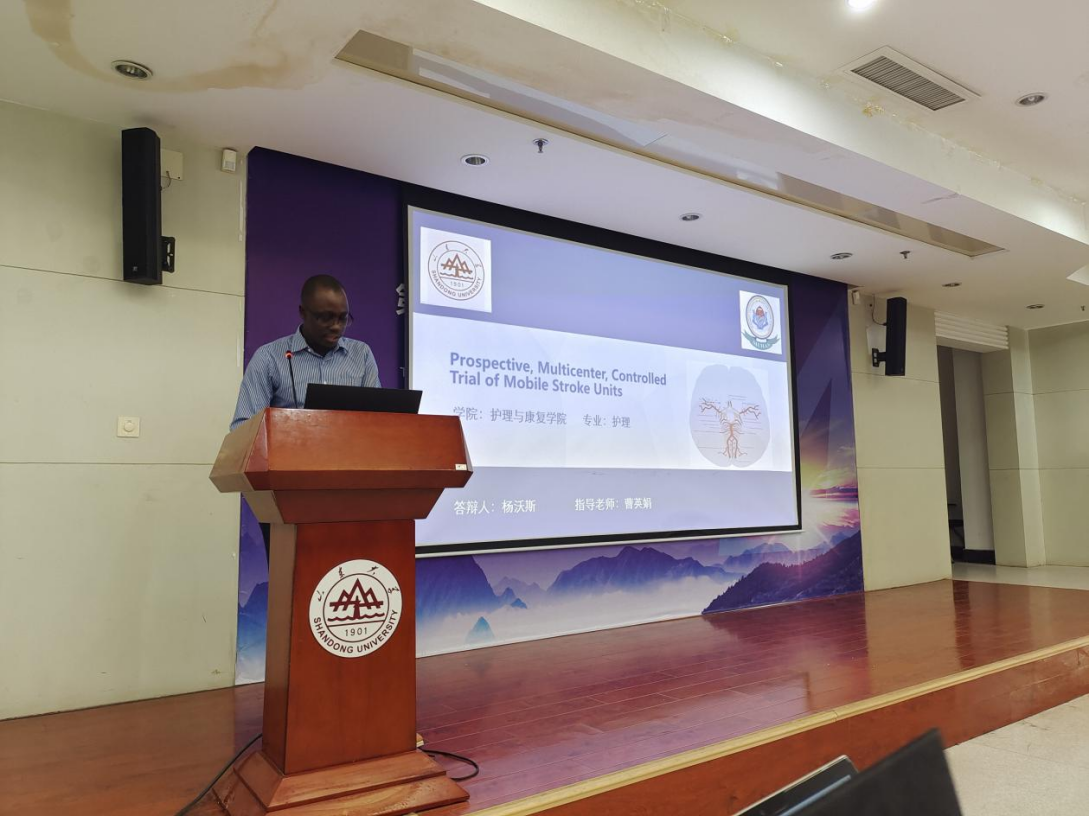 The third reporter is Nyagwaswa Athanas Michael, a 2019 master's student. This report is an article published in The New England Journal of Medicine. The title of the article he reported is Prospective, Multicenter, Controlled Trial of Mobile Stroke Units.The study explored Mobile stroke units (MSUs) are ambulances with staff and a computed tomographic scanner that may enable faster treatment with tissue plasminogen activator (t-PA) than standard management by emergency medical services (EMS). But whether and how much MSUs alter outcomes has not been extensively studied. The study employed an observational, prospective, multicenter, alternating-week trial to assess outcomes from MSU or EMS management within 4.5 hours after onset of acute stroke symptoms. The main analysis involved dichotomized scores on the utility-weighted modified Rankin scale (≥0.91 or 1) at 90 days in patients eligible for t-PA.