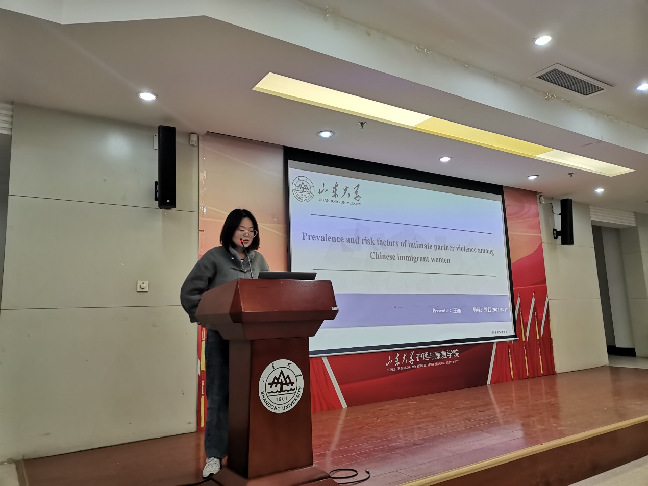 第二位汇报者王品同学做了题为“Prevalence and risk factors of intimate partner violence amongChinese immigrant women”的学术汇报,文章介绍了居住在美国的中国移民女性的亲密伴侣暴力的发生率和危险因素,作者通过在线网络调查在社交网站上招募中国移民女性,采用logistic回归分析方法,探讨了多层次因素与亲密伴侣暴力之间的关系,研究结果显示,年龄较小,和伴侣一起生活,社会支持水平和关系满意度低以及有不良的童年经历是亲密伴侣暴力的危险因素。文章建议未来的研究需要对遭受亲密伴侣暴力的中国移民女性提供社会支持,以解决中国移民女性的特殊需求。