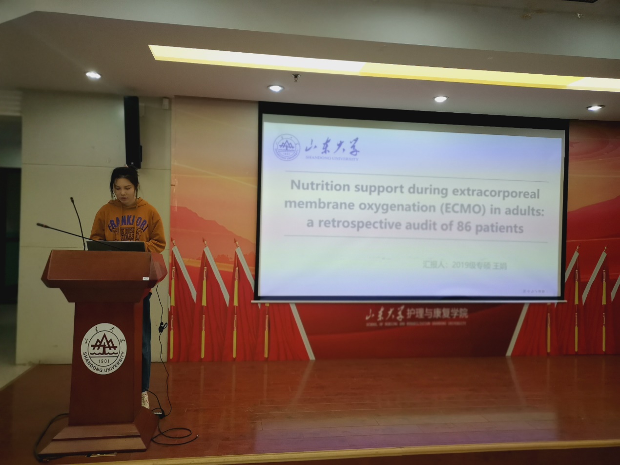 第一位汇报者王娟汇报的文献的题目是:Nutrition support during extracorporeal membrane oxygenation (ECMO) in adults: a retrospective audit of 86 patients。体外膜氧合(ECMO)越来越多地被用于支持严重心脏和/或呼吸衰竭的危重患者,由此产生的血流动力学改变,特别是ECMO的VA模式,意味着肠内喂养是不安全的。这项研究旨在调查这个问题,并确定影响肠内营养的因素。。该研究回顾性收集2007年1月至2012年7月在三级重症监护室/ECMO转诊中心接受ECMO治疗的86例患者的数据。得出结论无论是静脉-静脉模式还是静脉-动脉模式,接受ECMO的患者都能很好地耐受肠内喂养,行ECMO患者不应排除接受早期肠内喂养的好处。汇报结束后认真回答了同学提出问题:1、VA与VV两种模式的主要差异是什么?体外膜肺氧合主要用于对重症心肺功能衰竭患者提供的体外呼吸与循环,以维持患者生命。包括膜肺(人工肺)+血泵(人工心脏),分为呼吸辅助为主的ECMO流量和心功能支持为主的ECMO流量。V-V ECMO根据患者血气指标调整辅助流量(成人一般4-5L/min),ECMO氧浓度相对较高,V-A ECMO:辅助流量依据心功能状况,辅助开始可以高流量,根据血压、尿量、血管活性药物判定。2、VV模式结果中的能量需求与蛋白质需求差异的原因?VV模式下,患者需要大量的异丙酚镇静,而异丙酚具有镇静作用的同时还会干扰能量代谢,但对蛋白质没有很大的影响,这导致其描绘入ICU前两周的采取VV患者能量需求和蛋白质需求曲线的不重合。