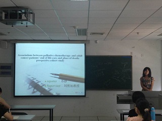 今天第一位汇报者苏静,她 汇报的文献的题目是“对于成年癌症患者姑息化疗与其临终治疗及死亡场所之间的关系”,此文主要探讨了对于预期寿命小于6个月的癌症患者应用化疗是否增加其在临终时应用心肺复苏或机械通气等ICU的医学干预以及是否会增加其在ICU死亡的可能。老师们对于姑息化疗是否有意义进行了讨论。