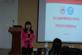 5月14日上午8点,sunbet申搏官方网站护理学院于105报告厅举办2013级在职研究生开题报告会。特邀国家级教学名师高英茂教授、千佛山医院护理部主任、院长助理许翠萍教授进行点评指导,全体研究生导师、研究生参加了此次开题报告。会议由护理学院王翠丽老师主持。