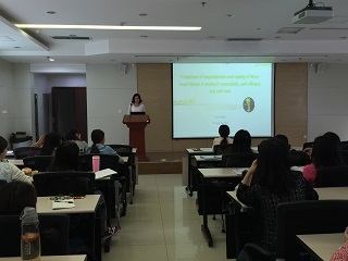 第三位汇报者是2014级学术型研究生邹会静,汇报的文献发表于国际护理研究杂志,题目为“Predictors of hospitalization and quality of life in heart failure: A model of comorbidity, self-efficacy and self-care”。该文章检验了有关心衰患者住院情况及生活质量已知因素的探索模型,探讨了共患病对心衰自我护理行为和结局的作用及共患病对心衰自我效能与自我护理维持关系的调节作用。王翠丽老师及同学们对本研究中自我护理行为、住院情况的等变量的测量,判断共患病的调节作用的分析方法等问题进行了讨论。