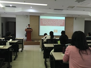 第二位汇报者是2014级专业学位研究生王萍,本次汇报的文献题目是The impact of an emergency department nursing intervention on continuity of care, self-care capacities and psychological symptoms: Secondary outcomes of a randomized controlled trial,这是一篇随机对照试验的次要结果的描述,运用严谨的随机分组、分配隐藏和盲法对研究进行了设计,并对试验组的研究对象进行了一对一的个体化干预,并应用临床试验的中期分析、对失访数据的意向性分析以及单独的协方差分析对数据进行了科学的统计分析,曹枫林老师对次要结果描述的必要性进行了深入的讨论。