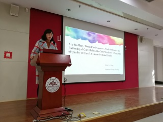 今天第二汇报者是吕梦,汇报的题目是Are Staffing, Work Environment, Work Stressors, and Rationing of Care Related to Care Workers’Perception of Quality of Care? A Cross-Sectional Study,本篇文献2015年发表于Journal of the American Medical Directors Association, 该杂志2016年影响影子为5.775, 5年影响因子为5.449。本研究来源于瑞士养老院人力资源项目的子课题,属于多中心的横断面调查,采用分阶段随机抽样瑞士160家养老院中4311名护理员进行问卷调查,使用护士工作指数量表、安全态度问卷、卫生保健人员压力评估清单、Basel护理配给量表、照护质量量表进行自评,通过描述统计和logistic回归分析,结果显示,在工作环境的评价中,团队合作和安全氛围得分最高,其次是人力资源配置;工作压力源的报告中,工作负荷是护理员工作压力最频繁的来源;护理配给的报告中,关怀、康复训练及社会照护两个维度缺失频率较高;关于照护质量的评价中,93%的护理员认为照护质量较好,7%的护理员认为照护质量较差;回归结果显示工作环境因素、工作压力源及隐性护理配给是预测养老院照护质量的重要因素。因此,今后的研究中,可通过改善人力资源配置、制定相应的减压措施、减少照护缺失行为等提高养老院的照护质量。汇报后,臧渝梨院长就隐形护理配给的内容和量表信效度的测量方法和同学们进行了讨论。