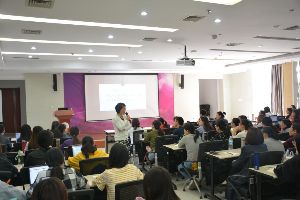 本次讲座以“Philosophical and Theoretical Foundations of Qualitative Research”为主题,主要就质性研究的哲学理论基础进行讲解。讲座伊始,刘福琴教授走到学生中间,对在读硕博研究生对质性研究的掌握程度进行了大致了解,并向大家发问“相不相信吃偏方生男孩”的传言?从而启示我们其实日常生活中就有许多涉及哲学的问题,由此引出质性研究的主题。她说到“人的经历是主观存在的,但却不能被量化”,这也是质性研究的精髓所在。随后刘教授对哲学、形而上学、本体论、认知论、价值论等概念进行了阐述,并以问题讨论的方式跟大家一起探讨质性研究的意义及其科学性,进一步说明在哲学范畴内去探索问题的重要性。除此之外,刘福琴还重点讲解了引导质性研究方法的四大类哲学理念:positivism and postpositivism,constructivism critical inquiry,participatory,culture studies。讲座最后,她以自己的一篇文章“Exploring Epistemological Implications of the Yin-yang Theory”为例,讲述自己如何从中国哲学观念看中国问题。