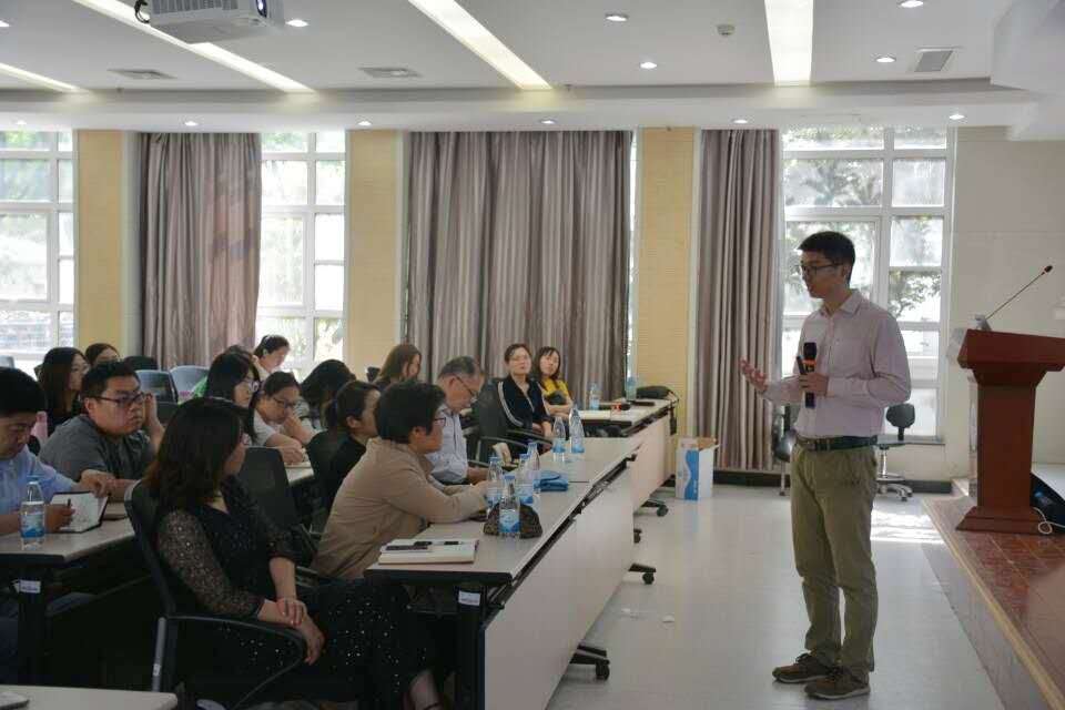 下午2点,本次讲坛正式开始,在崔乃雪老师对本次讲坛的背景及主讲人进行了简单的介绍后,程寰宇助理教授开始讲解本次讲坛的主要内容。首先,他对柔性可降解医疗传感器的柔性和可降解两个特性分别做了具体的介绍,柔性可降解医疗传感器较之一般传感器,它具有防水和柔软可延展性、又具有自身保护性,可避免过度拉伸的破坏,该传感器可以穿戴在皮肤甚至是结构复杂的器官表面,而且在完成功能后可完全溶解在体内,使患者免受二次手术取出的痛苦,降解产物无毒害作用,在某些情况下甚至可以促进伤口恢复,达到辅助医疗的目的。 他介绍到这种特殊的传感器不仅可以应用于患者,如捕捉大脑电波、器官功能检测等,还可以在一般人群中使用,实时动态检测人体的变化,如心电图曲线,肌电信号等,它们较之一般传感器更加舒适、所获得的数据可能更具有医疗诊断意义。程寰宇助理教授同时还介绍了其在医学之外的其他学科领域中的应用,例如对PH变化的监测,对环境中有害气体的监测等。