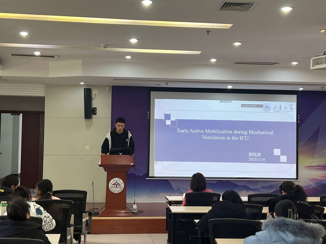 第一位汇报者是2022级硕士研究生郭祖涛,汇报的文章来自于The New England Journal of Medicine期刊,题为“Early Active Mobilization during Mechanical Ventilation in the ICU”。本研究是一样国际化多中心的随机对照试验,探索ICU机械通气患者早期活动能否增加180天存活的天数,研究对象为ICU接受机械通气的患者,本研究在6个国家,49家医院,共招募了750名患者。以1:1的比例将患者随机分配到干预组和对照组。干预组经物理治疗师评估过后进行强度较高的早期活动,结局指标包括第180天存活的天数,180天死亡率,以及患者报告的和生活质量相关的指标。结果表明早期活动并不能增加患者第180天存活的天数,其他的主要结局和次要结局都没有显著性的差异,此外早期活动还可能与不良事件增加相关。关于ICU早期活动,有许多研究得出了不尽相同的结论,这项研究虽然得出了阴性结果但它的研究设计方案严谨,结果可靠,逻辑性强,值得我们学习。