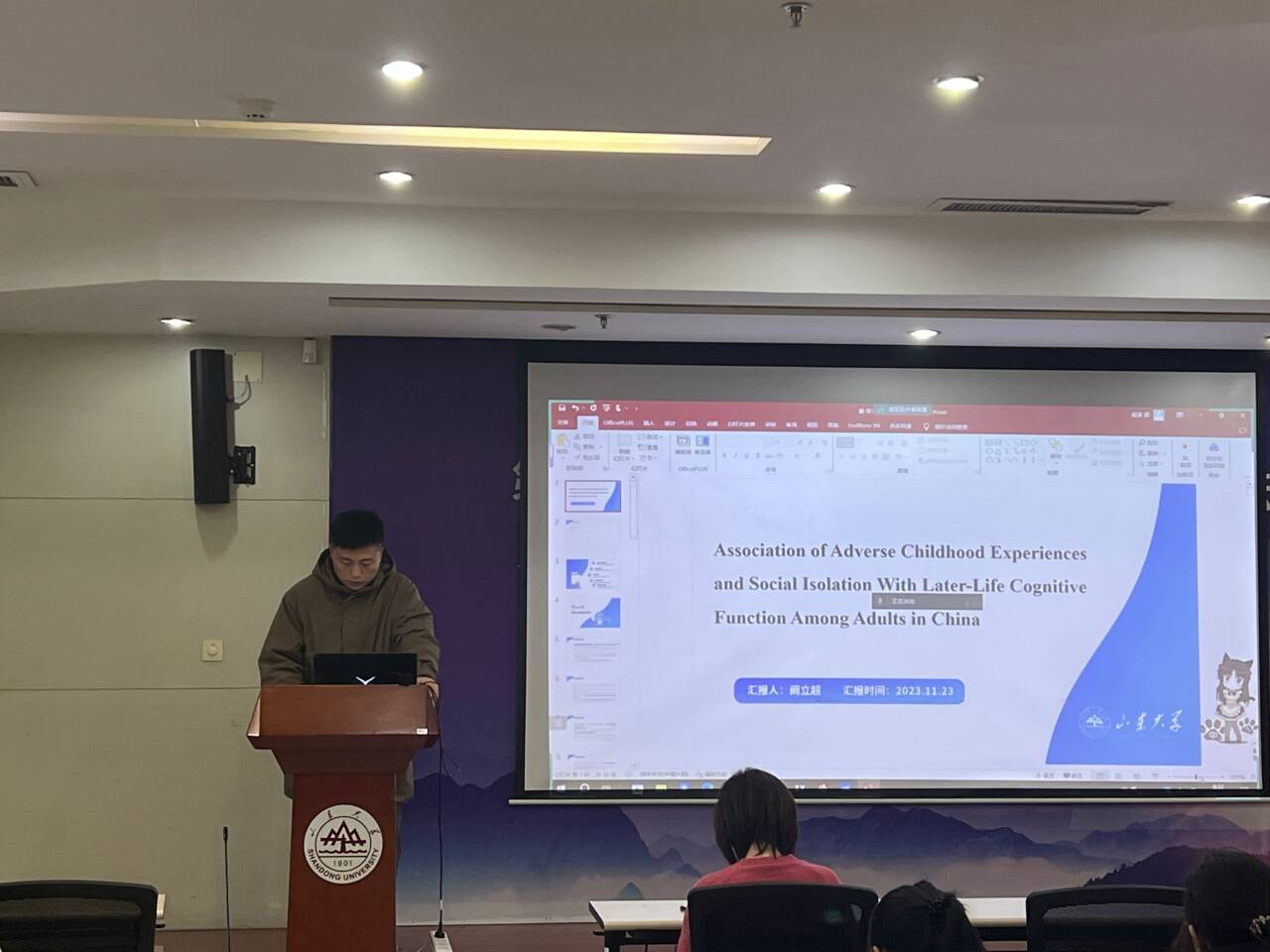 第四位汇报者是2022级硕士研究生阚立超,汇报的文章来自于JAMA Network Open期刊,题为“Association of Adverse Childhood Experiences and Social Isolation With Later-Life Cognitive Function Among Adults in China”。随着中国老龄人口的快速增长和预期寿命的延长,与年龄相关的疾病已成为主要的公共卫生问题。认知功能下降是其中一种疾病。既往研究通常采用累积风险模型来对童年不良经历(ACEs)进行概念化,认为所有类型的ACEs都会通过相同的潜在机制影响认知功能。但从逆境和心理病理学的维度视角出发,还缺乏关于威胁相关和匮乏相关的ACEs与晚年认知能力下降的关系的研究。同时,对社会隔离在童年威胁和匮乏与认知能力下降之间的关联中的调节作用了解有限。该研究使用中国健康与退休纵向研究(CHARLS)的2011年基线调查的认知数据,2015年的随访调查以及2014年的生活史调查进行分析。该研究发现与匮乏相关的ACEs,而不是与威胁相关的ACEs,与晚年认知功能的更快下降有关,而社会隔离可以改变这种有害的影响。未来我们可以采用多中心的研究设计来探讨ACEs的不同维度与认知功能的关系。