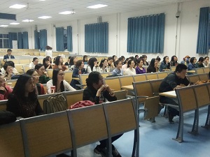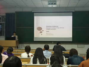 晚上7点,宣讲正式开始。臧渝梨副院长首先对德克萨斯大学做了一个简单介绍,然后便开始主要针对该项目的访学内容、访学结果、UTT奖学金及要求、申请程序、学生需负担费用五个方面进行讲解,先是提到该项目适用于两类学生,一是希望获得UTT学分或硕士学位的学生,二是仅希望参加UTT相关课程学习的学生,这些学生在指导教师的帮助下,选修与培养目标相关的护理专业课程。另外臧老师指出学生也可根据培养方案,有针对性地修读,每学期最多选修3门课程,3学分/门,共计9学分。其中课程的方向:行政管理方向;行政管理与MBA双学位方向;教育方向;健康学方向。最后臧老师强调了申请程序的八个步骤,包括报名、联网面试、网上注册与缴费、获得信函、申请出国、办理签证、购买保险及启程赴美。考虑到学生的经济顾虑,臧老师又给大家详细介绍了出行费用。会议最后,臧老师针对同学们提出的一些问题详细做了回答,话音刚落台下便响起了热烈的掌声。现场便有不少同学们受到鼓舞后积极报名参加。