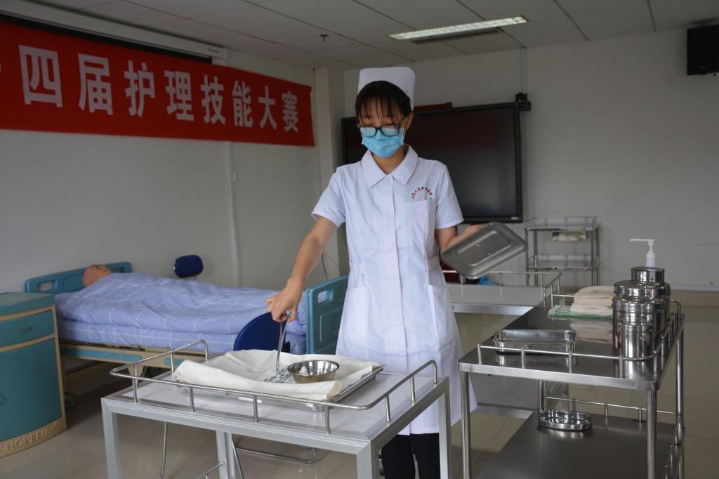 8时30分,比赛正式开始。本次大赛共分为五项单项比赛和一项综合全能比赛,重点考察学生的临床操作与临场应对能力,是对学生理论知识与业务水平的综合考察。场内比赛如火如荼地进行,参赛者们有条不紊地进行着各项操作,候场区的各位参赛者逐一查对比赛用品是否齐全。铺床比赛现场,参赛者一丝不苟地进行操作,评委老师认真地注视着参赛者的每一个动作并为他们打分,周围的志愿者们则穿梭在各个赛场中辅助参赛者整理器具和协调赛场顺序,保证了比赛的有序进行。静脉注射赛场,参赛者仔细核对病人的相关信息,谨慎地为病人进行注射;无菌操作赛场,参赛者谨记各项操作步骤及注意事项。评委们更是精益求精,不时向参赛者提出问题考验其对操作的熟练程度,增加了比赛的紧张氛围,也让参赛者对自己的水平有了更加清晰的认知。