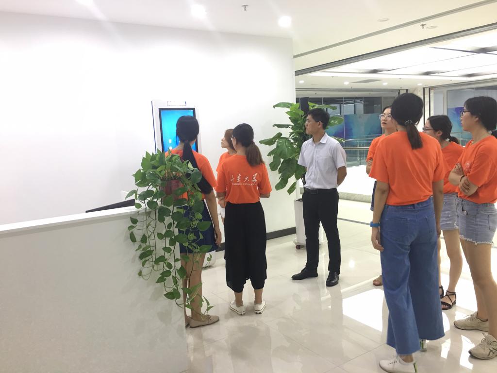 6日上午冒着酷暑,大家一路上互帮互助,顺利到达目的地。为了保证明天活动顺利进行,并保证调研效果,大家仅是稍作休息、整顿,便直奔实践基地,下午同学们跟着亚华公司的人力行政部经理李新蕾、总经理助理任云杰的带领下参观了企业环境,了解公司的建筑布局、组织构建、部门分布、文化氛围,随后总经理助理任云杰、亚华公司产品部经理宋庆在公司会议室向同学们讲述了公司的创业历史以及公司的主要研发产品,并与同学们围绕公司产品进行了交流,同学们结合自身实习和调研经历都提出了建议和看法。