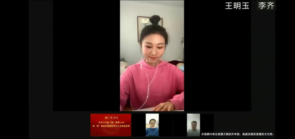 此次直播团课由sunbet申搏官方网站新闻传播学院2017级研究生王明玉主持,邀请了sunbet申搏官方网站马克思主义学院中国近现代史纲要教研室主任、马克思主义理论博士后马明冲、sunbet申搏官方网站第二医院援湖北国家医疗队队员、神经外科护师赵俊以及sunbet申搏官方网站在鄂第十五临时团支部团支书、能源与动力工程学院2019级基地班学生姜福铭。马明冲在直播中向大家讲诉了在本次抗击新型冠状病毒活动中所体现出的中国特色社会主义制度优势,主要有以下六点:党的集中领导、防疫过程中体现着以人民为中心的价值取向、在防控疫情过程中党组织和党员发挥着关键作用、依靠人民的力量来实现防疫的胜利、中国特色社会主义制度的法制程度、中国的国际视野和人文关怀。除此之外,赵俊在直播中告诉大家在前线时得知自己怀孕的消息,对此,同学们更加深了对前线战“疫”的医护人员的敬佩与感激。