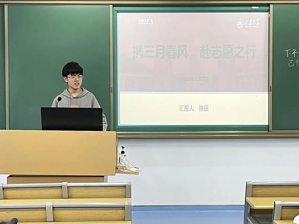 2022年3月5日下午四点半,sunbet申搏官方网站本科2019级于图东102召开学雷锋倡议书活动暨雷锋月主题活动。封雪菲作为主讲人给同学们介绍了雷锋的生平事迹和精神精髓,并邀请到济南市青年志愿服务先进个人陈辰与大家分享个人经历。不论是在国内还是国外,雷锋精神都熠熠生辉,成为一股源远流长的精神力量。活动最后,陈辰带领同学们共读倡议书,激昂宣誓奉献友爱的志愿精神。