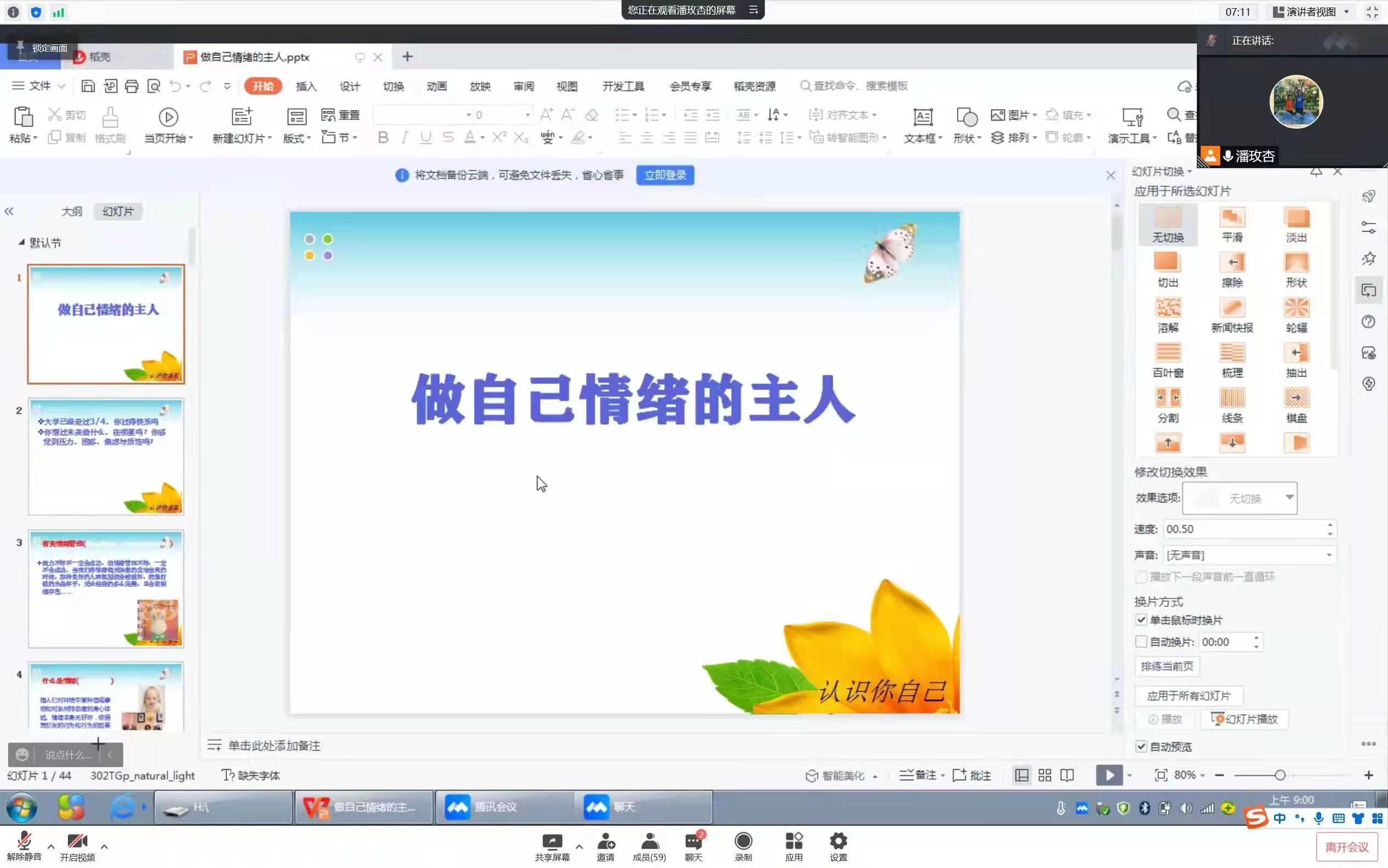 为帮助同学更好地调节自己的情绪,缓解紧张的压力,认识更好的自己,sunbet申搏官方网站本科生于3月31日上午9:00,通过线上腾讯会议的形式召开了以“做自己情绪的主人”为主题的“走进心灵”讲座。本次讲座由辅导员潘玫杏老师担任主讲人。