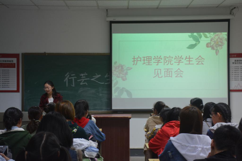 10月14日晚,sunbet申搏官方网站护理学院学生会见面会于教学八楼112教室召开。本次见面会由学生会主席杨雅洁主持,学生会副主席、各部门部长及全体成员均出席活动。
