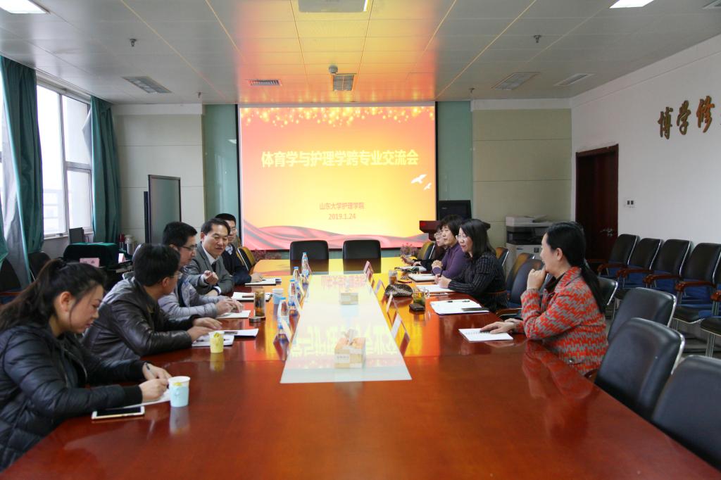 1月24日,为贯彻落实国家健康中国战略,创新人才培养模式,打造医体融合发展新领域,体育学院党委书记、院长孙晋海,常务副书记郭学庆,副院长王飞,社会体育指导与管理系主任田雨一行赴护理学院进行学科合作交流,开展体育学与护理学跨专业交流会。护理学院院长王克芳,党委副书记曹源,院长助理李静,教学办公室主任初世红及教学秘书王元媛参与了本次务虚交流会。