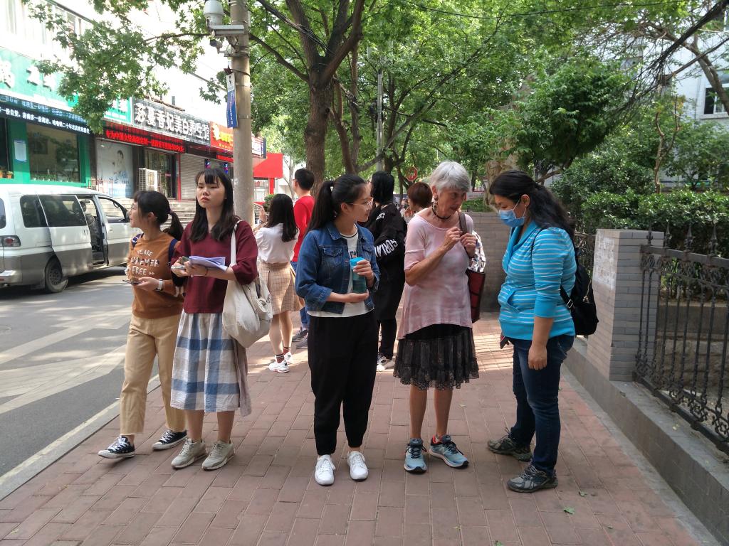 两点整,2016级全体准时到达护理学院507,在院长助理李静老师向大家简要介绍Judith McFarlane教授之后,课堂便正式开始了。首先,Judith教授先与同学们进行了简单轻松的互动,拉近了双方距离,消除了同学们对全英文授课的紧张感。此次授课分为三个步骤进行,即社区评估内容讲解、前往社区实地观察以及师生交流总结。在讲解阶段,Judith教授结合全英文PPT,以what is community等简单而深刻的问题调动了课堂氛围,接着区分了社区与医院两个概念,加深了同学们对社区的理解,并以人体系统为例,表明社区也是一个完整的系统,有交通系统、娱乐系统、经济系统等八大系统。课堂进入第二环节,同学们随机分为四组,每组的任务是观察社区的两个系统,在老师的带领下前往社区实地观察。第一次经历让同学们尤其兴奋,极其细心地观察社区的各个角落,杂乱的电线、地面的坑洼、随处停放的车辆以及无人照看的宠物等等。四点钟,清点人数后统一返回学院教室,由同学们依次分享此次实验课的感悟,主要介绍所观察到的现象及可能导致的健康问题,在师生的热烈交流下课堂也进入了尾声。