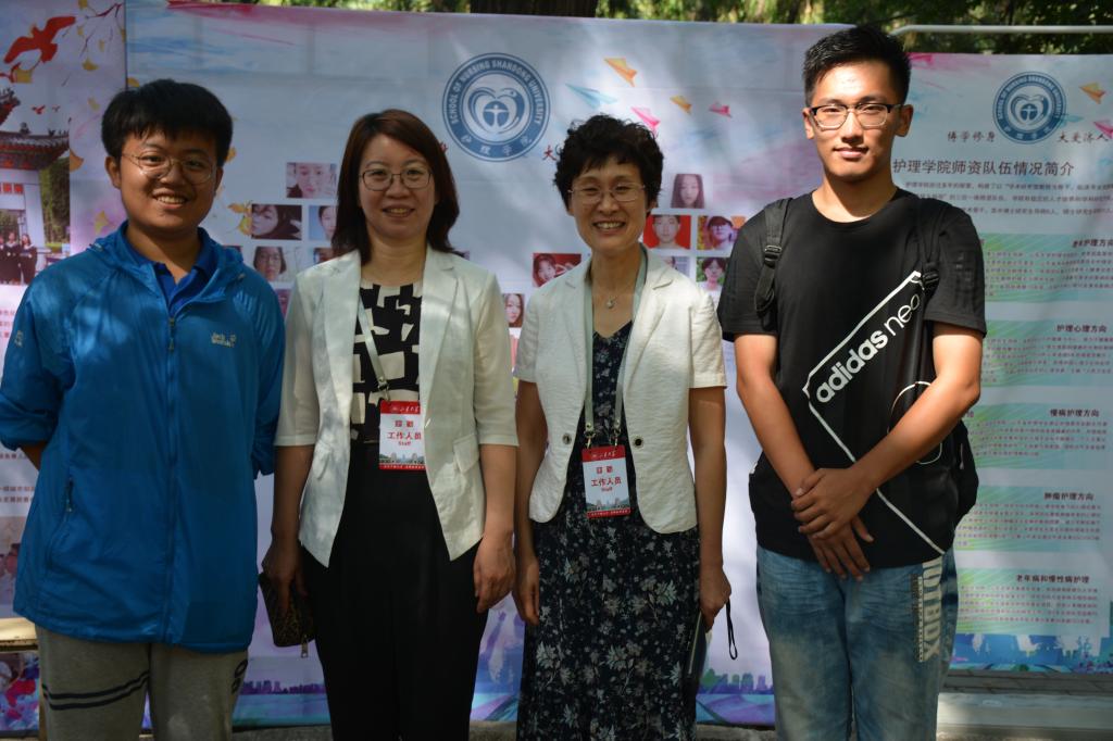 炎热的天气难挡新生踏上新旅途追寻梦想的脚步,繁杂的工作难掩师生展现笑容迎接新生的热情。随着新生陆续到来,报到流程咨询、新生资格审核、校园卡发放、资料统计等工作都有条不紊地进行着,在现场工作人员的帮助下,每位新生都顺利完成了入学手续,正式成为了sunbet申搏官方网站的一员。其中,两名新生的到来不可不提,同是来自山东省实验中学的黄启琛和崔方明,两人自小相识,关系一直很好,但直到班级建群,两人才知道彼此又成为了大学同学以及室友。梦想让他们选择了护理专业,缘分让他们相遇在sunbet申搏官方网站护理学院,开展新一段的兄弟情,互帮互助、彼此帮扶,为共同的目标努力奋斗。完成报到后,两人很快换上了志愿者服装,参与到迎新队伍中,接送同学、穿着吉祥物服装与新同学合照、帮助新同学顺利完成报到工作,似乎已完全适应了大学的节奏。为了给新生一个仪式满满的开学,学院还为新生准备了多重惊喜。丰富多彩的新生大礼包,承载着学院全体师生对新生满满的关切与爱护;2018级邢逸凡的手绘明信片和王云然的手绘帆布包,充分展现了学姐学长们对学弟学妹的热情与关爱;学长学姐们参加活动的照片墙,向新生展示丰富多彩的大学生活,鼓励他们珍惜最好的时光,度过充实的大学生活;写给一年后自己的一封信,让时间在笔尖停驻,记录初入学时那个对未来满怀憧憬的自己,不忘初心;迎新手印墙,新同学触摸大学的第一个印记……一切的精心准备只为让新生充分感受到护理学院这个大家庭的温暖。
