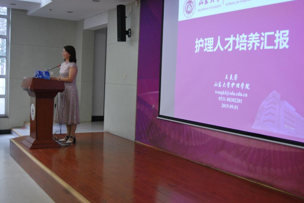 9月1号下午3点,sunbet申搏官方网站护理学院举办2019级新生家长见面会。此次家长会由护理学院党委书记李峰主持,护理学院院长王克芳教授、副院长范秀珍教授、党委副书记曹源副研究员、专职组织员鲍红副研究员、院长助理李静教授参加了此次见面会。同时本次家长会还邀请到了学院知名校友代表,齐鲁医院护理部主任栾晓嵘教授、教师代表崔乃雪老师。