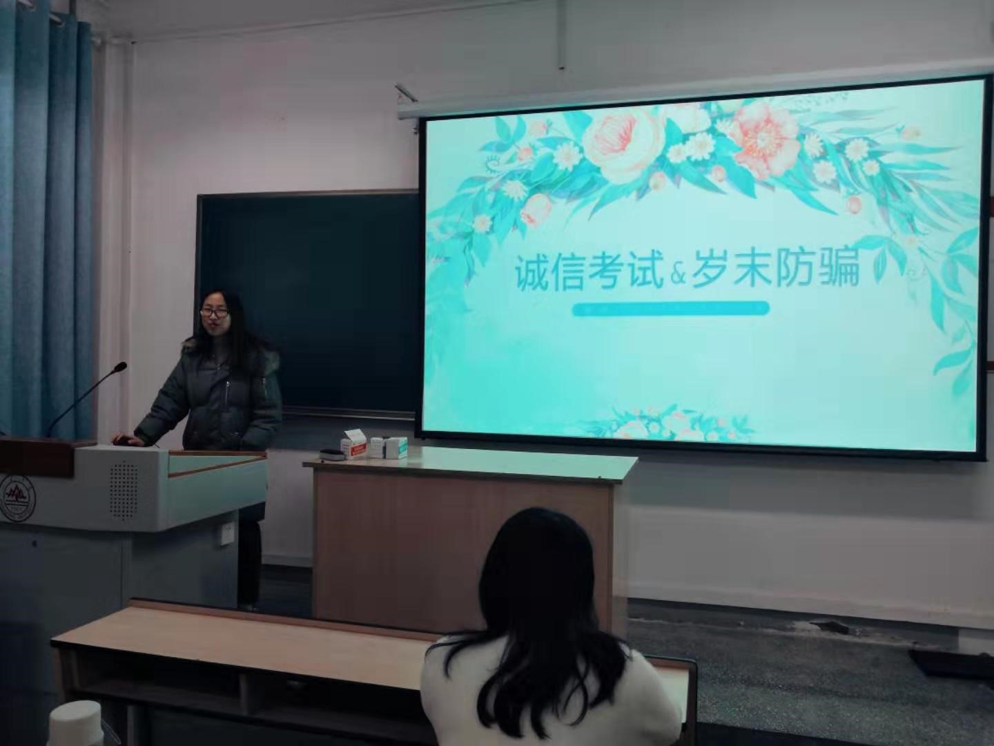 在考试周即将来临之际,为弘扬诚实守信的中华民族传统美德,营造求实求是的优良学风,护理学院2018级在趵突泉校区九号教学楼108教室举行“诚信考试”主题班会。同学们准时到达教室,有序就坐。
