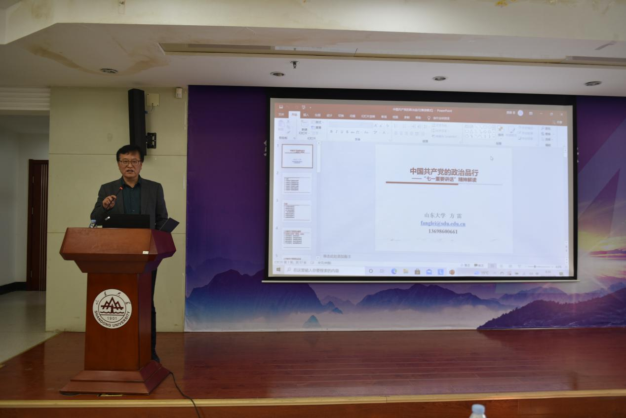 报告会以“中国共产党的政治品行”为主题,结合习近平总书记“七一重要讲话精神”,向在座党员强调了中国共产党的政治属性和政治立场,讲述了党在带领中国人民走向富强的过程中发挥的独特优势。方院长梳理了中国共产党在为民族独立、国家富强和人民幸福奋斗历程中作出的伟大贡献和所取得的辉煌成就,回顾了中国共产党成立百年来领导人民革命和不断进行自我革命的奋斗历程,总结了党在治国理政方面取得的重要成绩。他指出,为中国人民谋幸福,为中华民族谋复兴是中国共产党人的初心和使命,新时代,我们要以永不懈怠的精神状态和一往无前的奋斗姿态,继续朝着实现中华民族伟大复兴的宏伟目标奋勇前进。