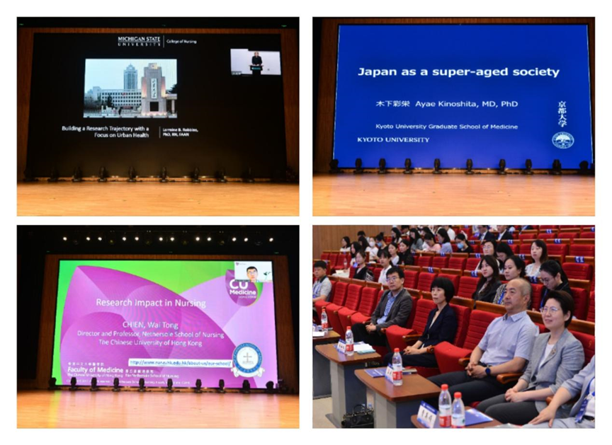 开幕式结束后,精彩纷呈的学术盛宴拉开了帷幕。美国密歇根州立大学Lorraine B. Robbins教授、日本京都大学木下彩栄教授和香港中文大学Wai Tong Chien教授分别就“构建以城市健康为重点的研究轨迹”、“超老龄化的日本”和“护理领域的研究影响”为主题进行了精彩的主旨报告。三位专家就自己在护理科研方面的思考、探索和实践先后进行了讲解,高屋建瓴,引人深思。