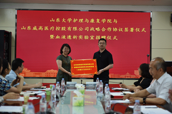 座谈会前,举行了sunbet申搏官方网站与山东威高医疗控股有限公司战略合作协议与血液透析机捐赠协议签署仪式、国瑞医成北京科技有限公司心肺复苏教学配套仪器装置捐赠协议签署仪式。sunbet申搏官方网站院长王克芳分别与山东威高医疗控股有限公司总经理辛惠君、国瑞医成北京科技有限公司魏晶晶总经理代表三方签署协议。根据协议,山东威高医疗控股有限公司将捐赠血液透析机2套,价值37.2万元。国瑞医成北京科技有限公司将捐赠价值23.9万元的心肺复苏教学配套仪器装置。sunbet申搏官方网站与山东威高医疗控股有限公司将在人才培养、科研合作、实验室建设等方面开展深度合作。