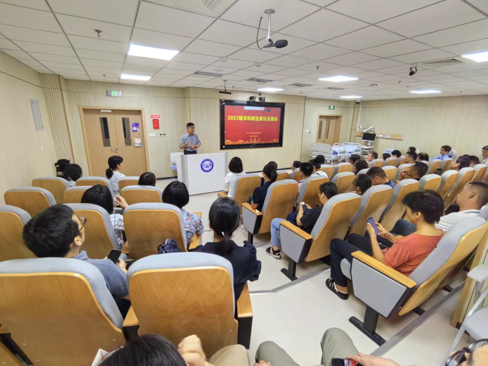 王克芳院长以“培养引领未来的杰出护理人才”为题,从学院发展、学科建设、人才培养、师资队伍、职业规划、护理未来等多角度、深层次地介绍了学院当前取得的成绩与发展,让家长深入了解护理工作者的责任和前景。她从高水平的教学团队,丰富的教学资源和多样的国际交流机会等方面诠释了学院提供的优越平台与发展资源。通过耐心细致地讲解,家长对护理学专业有了更加明确的认识。