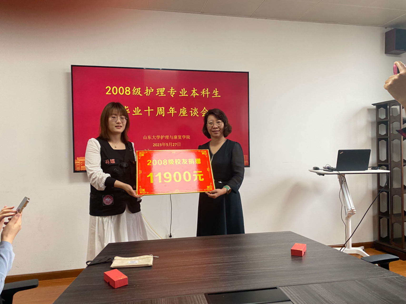 座谈会结束前,2008级校友向“sunbet申搏官方网站护理教育基金”捐款11900元,支持学院护理教育事业发展,王克芳院长代表学院接受了捐款。