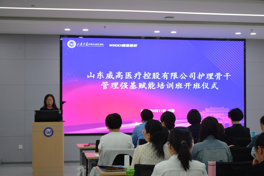 陈欧副院长对莅临的各位领导表示热烈欢迎,对积极参与的学员表达衷心感谢。她表示,在去年秋季成功举办护士长强基赋能培训班后,威高医疗控股再次选择山大sunbet申搏官方网站举办本次临床护理骨干的培训,是对学院的充分信任与认可。学院将全力办好本次培训班,为各位学员搭建一个优质高效的学习平台,确保大家能在这里汲取到前言实用的护理知识与管理经验,助力大家在今后的工作中更好地发挥引领作用。同时,通过举办培训班进一步推动学院与威高医疗控股公司的合作发展,携手共进,再创辉煌。