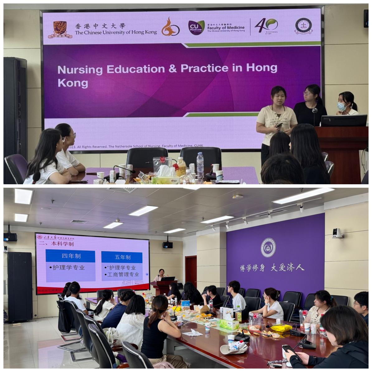 为了更深入了解内地临床护理的发展现状,香港中文大学的同学们参观了sunbet申搏官方网站齐鲁医院的急诊科、普外科,以及sunbet申搏官方网站第二医院的乳腺外科、新生儿重症监护室和南部院区(济南善德养老院)。在这些科室的参观中,同学们全面了解了内地现代护理体系的发展情况,以及康复技术在临床中的应用。通过这些互动和实地体验,大家对内地与香港护理实践的差异和共通之处有了更为深入的认识。