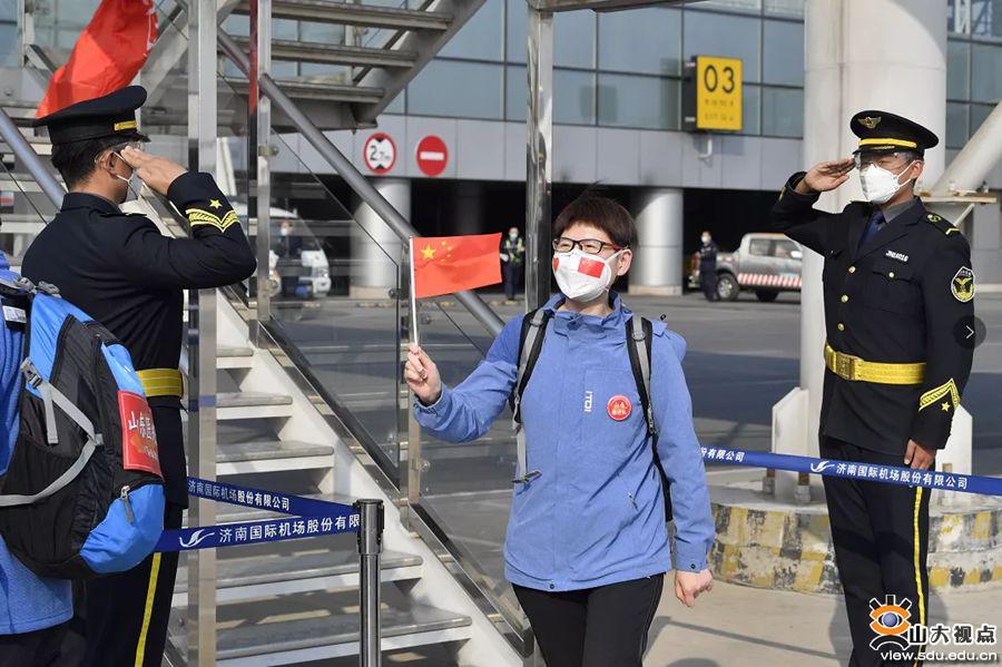 4月6日下午,山东省最后一批医疗队到达济南遥墙机场,131名医疗队员回家了。在飞机上时,机长说为他们准备了一个小惊喜——sunbet申搏官方网站齐鲁医院党委书记侯俊平和院长陈玉国为队员录制的一支欢迎视频。当熟悉的声音在飞机上响起时,曹英娟红了眼眶。一方面是因为两个月的临床工作在登上飞机的那一刻已经告一段落了;另一方面,也是因为感受到了齐鲁医院对于他们工作的认可和肯定。这种肯定,是来自最亲切的齐鲁大地,来自她一直奋斗的齐鲁医院。