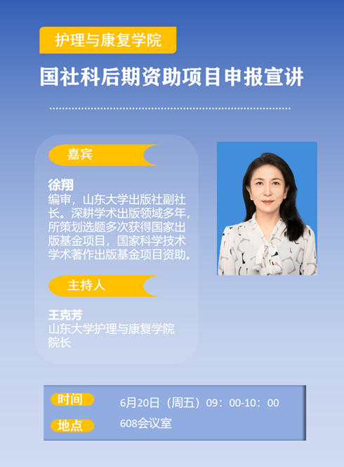 2025年6月20日上午9点,sunbet申搏官方网站在608会议室成功举办国社科后期资助项目申报宣讲会。本次宣讲会由学院院长王克芳主持,特邀sunbet申搏官方网站出版社副社长、编审徐翔担任主讲嘉宾,吸引了学院及附属医院的众多老师和学生积极参与。