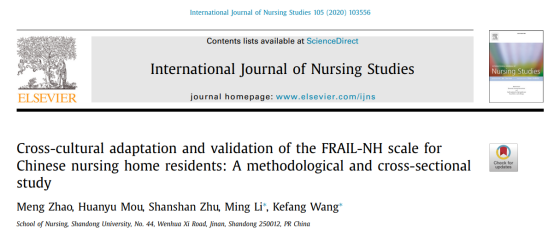 《Cross-cultural adaptation and validation of the FRAIL-NH scale for Chinese nursing home residents: A methodological and cross-sectional study》