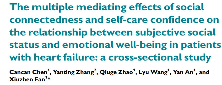 《The multiple mediating effects of social connectedness and self-care confidence on the relationship between subjective social status and emotional well-being in patients with heart failure: a cross-sectional study》
