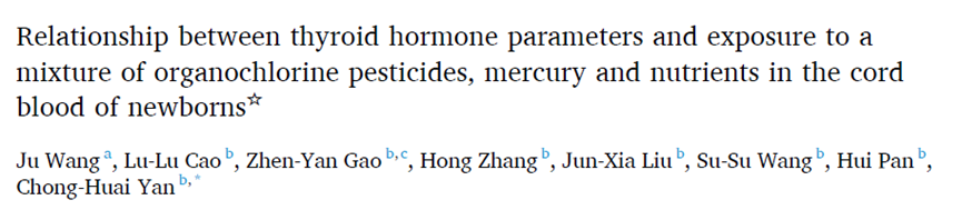 《新生儿脐带血中甲状腺激素指标与有机氯农药、汞和营养物质复合暴露的关系研究》