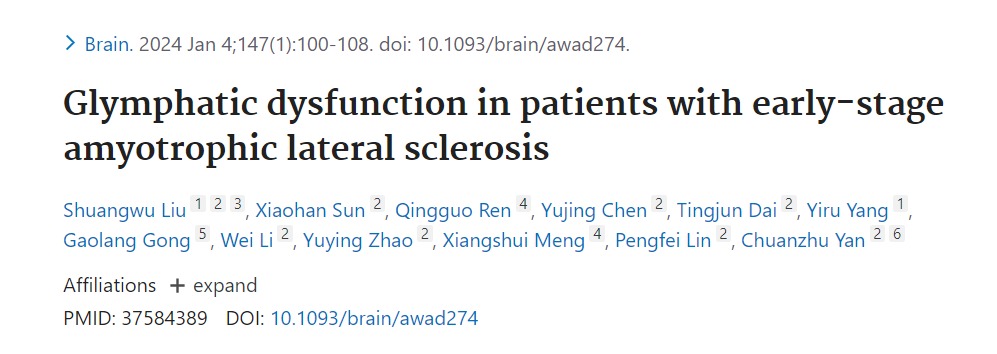《Glymphatic dysfunction in patients with early-stage amyotrophic lateral sclerosis》