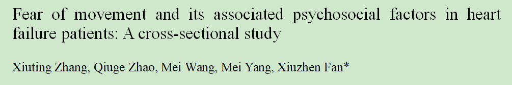 《Fear of movement and its associated psychosocial factors in heart failure patients: A cross-sectional study》