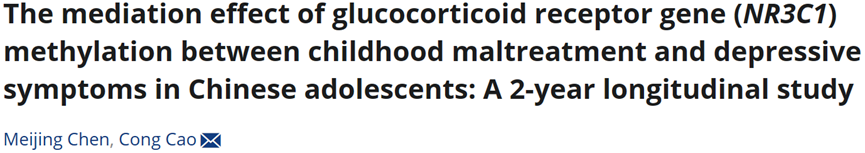 《The mediation effect of glucocorticoid receptor gene (NR3C1) methylation between childhood maltreatment and depressive symptoms in Chinese adolescents: A 2-year longitudinal study》